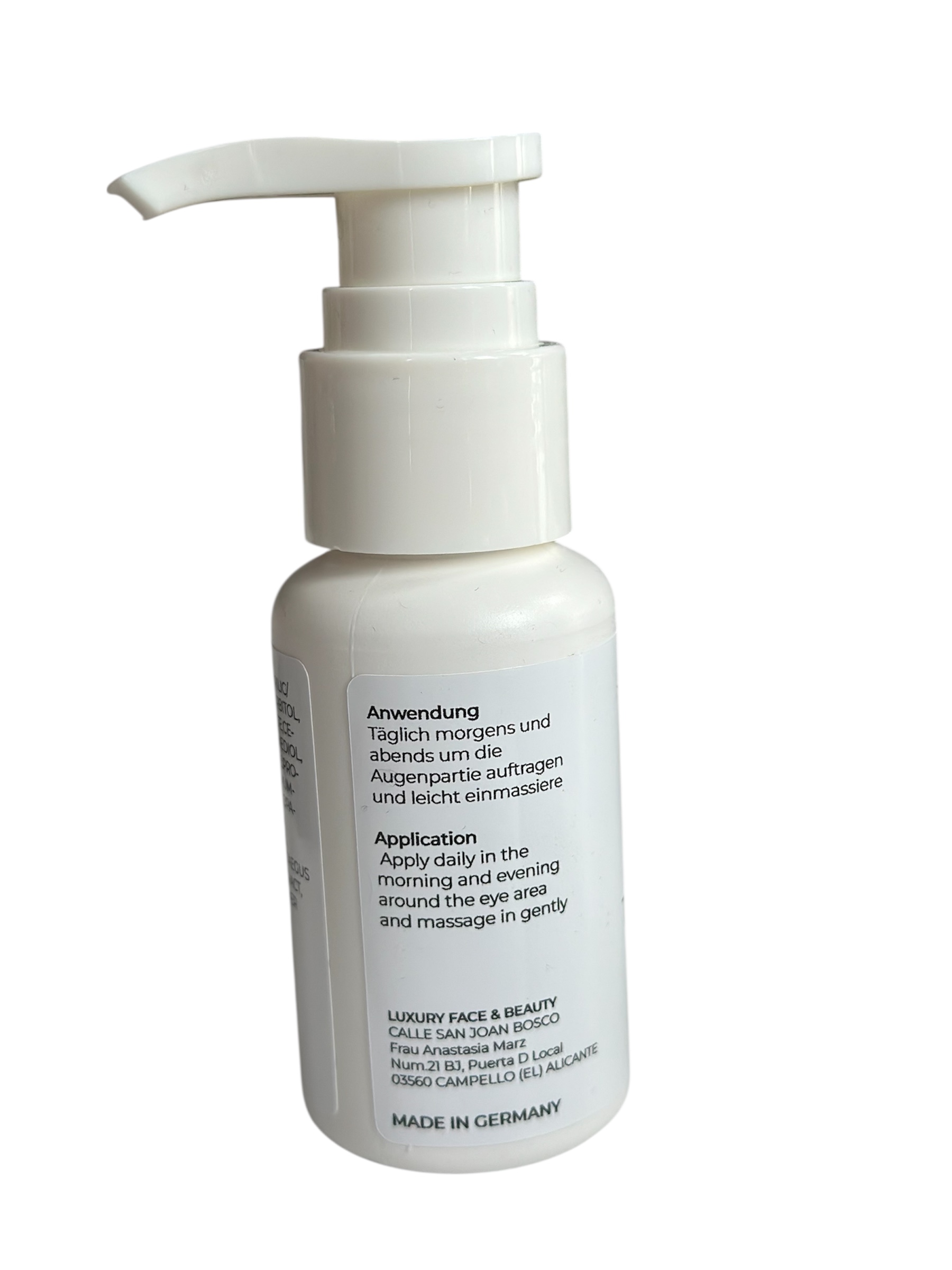 Täglich morgens und abends eine kleine Menge um die Augenpartie auftragen.